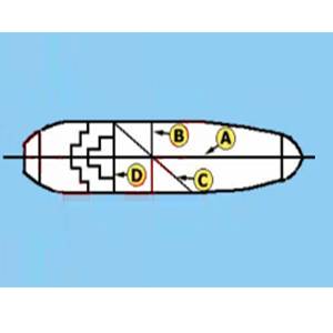 On the diagram, which letter indicates what is meant by the word "DRAUGHT" of the ship?